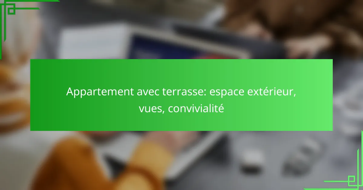 Pour choisir un appartement avec terrasse, il est essentiel de considérer l’emplacement, la taille et l’état de l’espace extérieur. Une terrasse bien située et bien entretenue peut grandement améliorer votre qualité de vie et vos moments de convivialité.