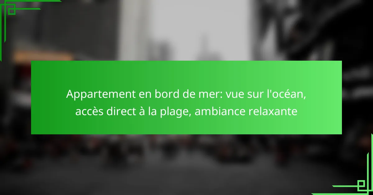 Les critères de sélection pour un appartement en bord de mer incluent la vue sur l’océan, l’accès direct à la plage et l’ambiance générale de la propriété. Assurez-vous que l’appartement dispose de fenêtres orientées vers la mer pour profiter pleinement du paysage.