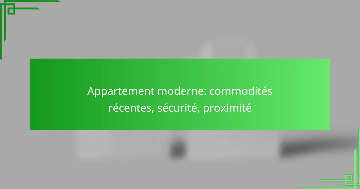 Les critères de choix pour un appartement moderne incluent les commodités récentes, la sécurité et la proximité des services. Il est essentiel de considérer ces éléments pour garantir un cadre de vie confortable et pratique.