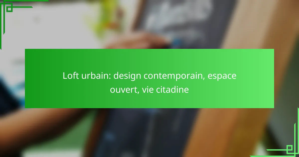 Un loft urbain est un espace de vie moderne qui allie design contemporain et aménagement ouvert, souvent situé dans des bâtiments industriels réhabilités. Ce type d’habitat séduit par son esthétique unique et sa flexibilité, attirant ceux qui aspirent à un style de vie citadin vibrant et dynamique.