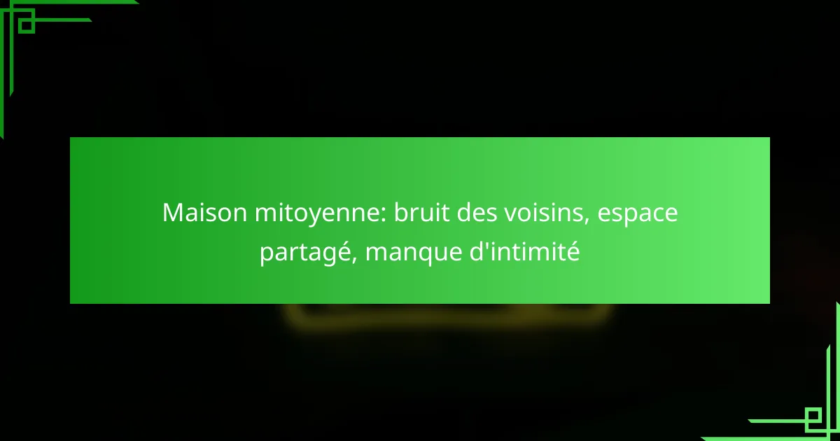 Les maisons mitoyennes présentent plusieurs défis, notamment le bruit des voisins, l’espace partagé et le manque d’intimité. Ces problèmes peuvent affecter la qualité de vie des occupants et nécessitent des solutions adaptées.