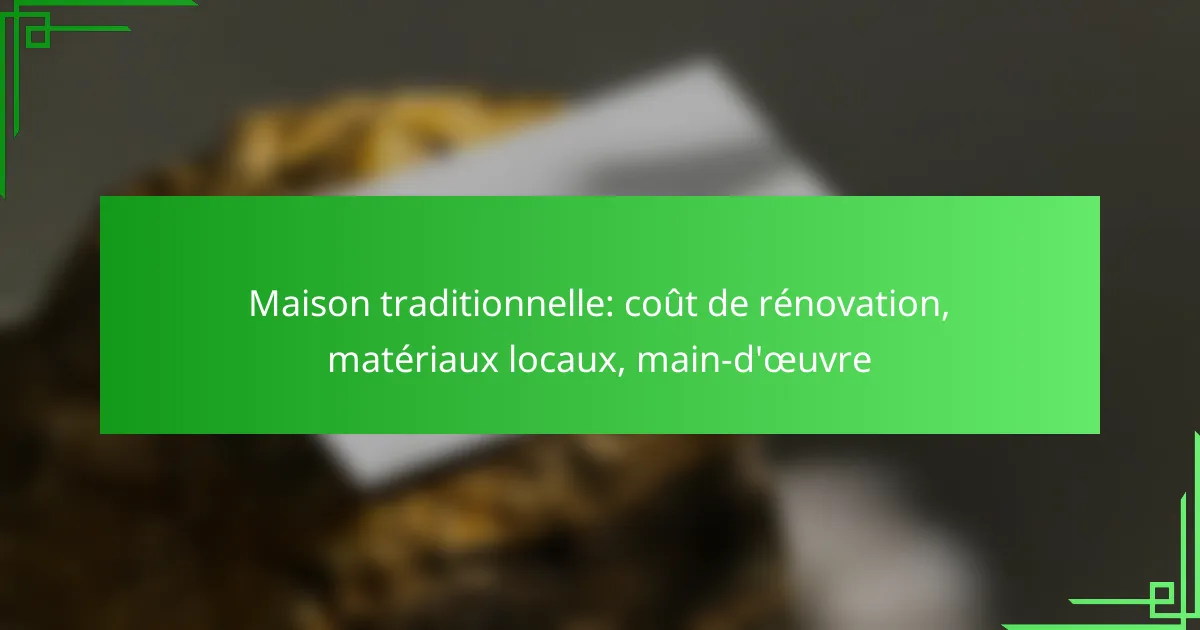 La rénovation d’une maison traditionnelle nécessite une attention particulière au coût, aux matériaux locaux et à la main-d’œuvre. Les budgets peuvent varier de quelques milliers à plusieurs dizaines de milliers d’euros, en fonction de l’ampleur des travaux et des choix de matériaux. L’utilisation de matériaux locaux comme la pierre et le bois assure non seulement l’authenticité, mais aussi la durabilité de la construction. Enfin, le choix d’artisans qualifiés est essentiel pour garantir la qualité des rénovations et le respect des délais.
