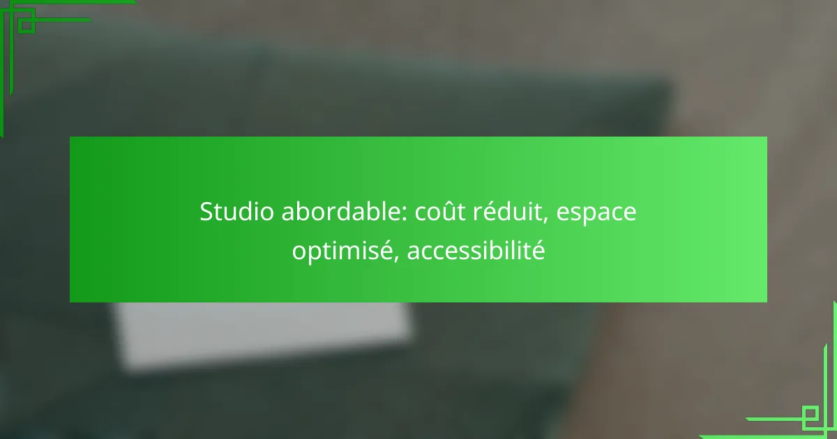 Pour choisir un studio abordable, il est essentiel d’évaluer votre budget, de considérer l’agencement de l’espace et de vérifier les équipements disponibles. Une bonne planification vous permettra de trouver un studio qui répond à vos besoins sans dépasser vos moyens financiers.